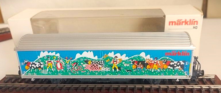 Schiebewandwagen Hbils der Schweizer Bundesbahnen SBB. Sondermodell "Alpaufzug". Passsend zu den Lokmodellen 3452 und 3752.