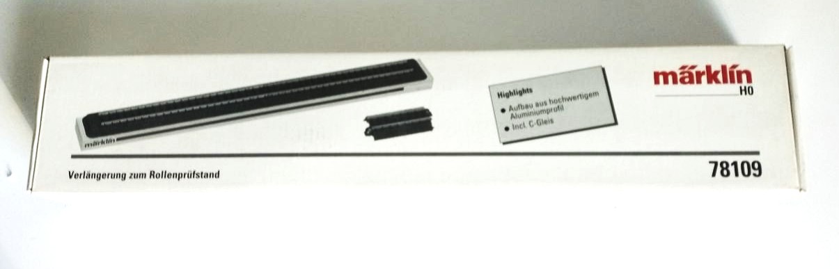 Märklin 78109: H0 Verlängerung 400 mm zum Rollenprüfstand 78100. Neu und originalverpackt. Weitere Informationen lesen Sie untem im Artikeltext. 1 Stück.