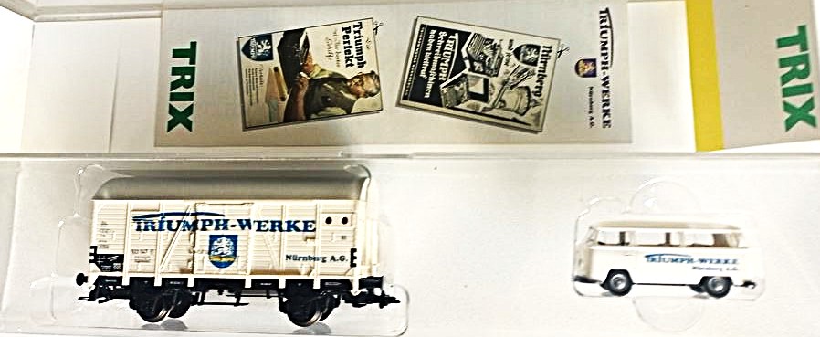 TRIX 24043 H0 Museumsset Güterwagen mit VW-Bus (Wiking) Triumph-Werke Nürnberg. Neu und originalverpackt. 1 Set.
