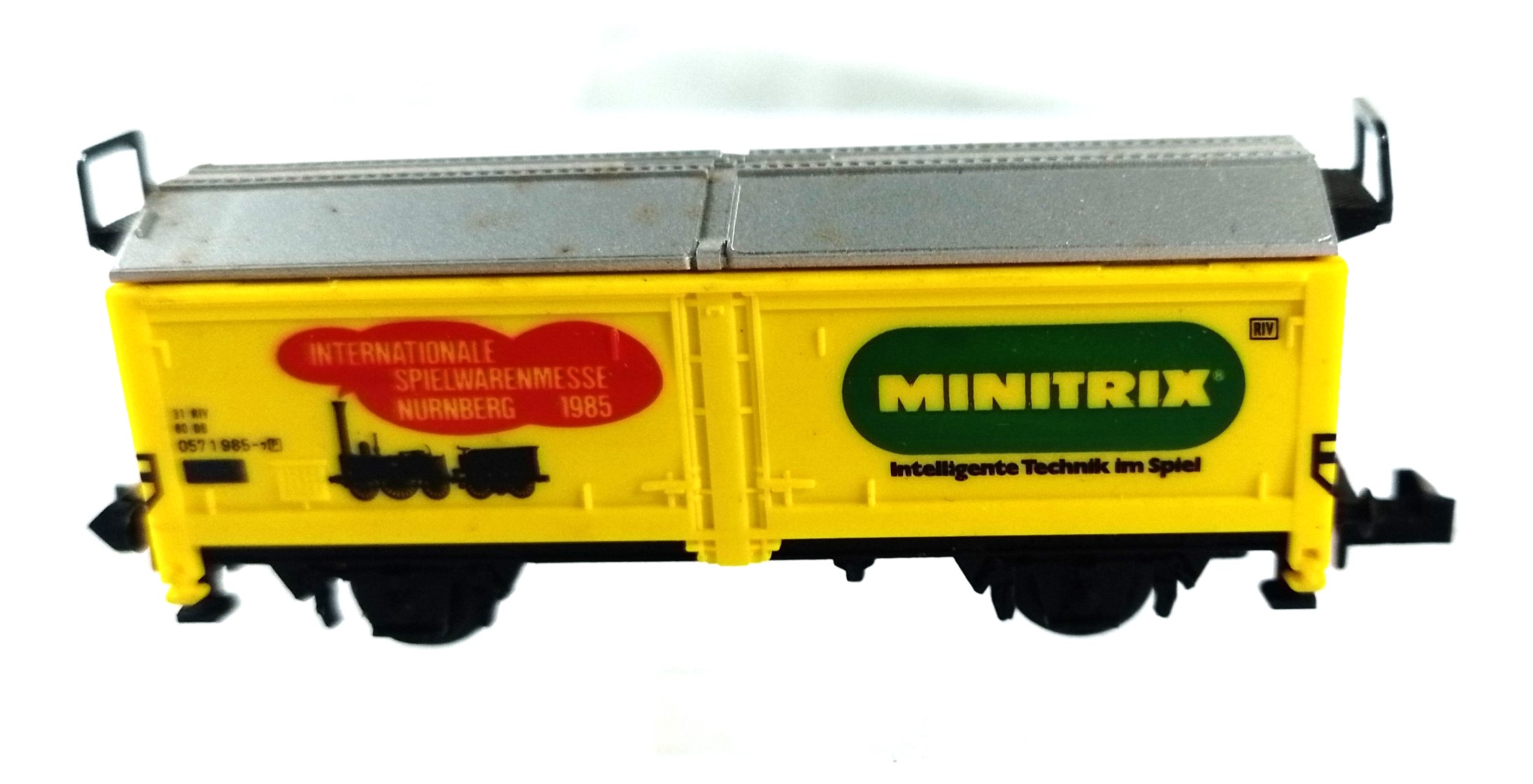 TRIX 11985: N Minitrix Hub-Schiebedachwagen Basis 13530, Sondermodell Spielwarenmesse 1985. Gebraucht, mit neutraler Ersatzverpackung. 1 Stück