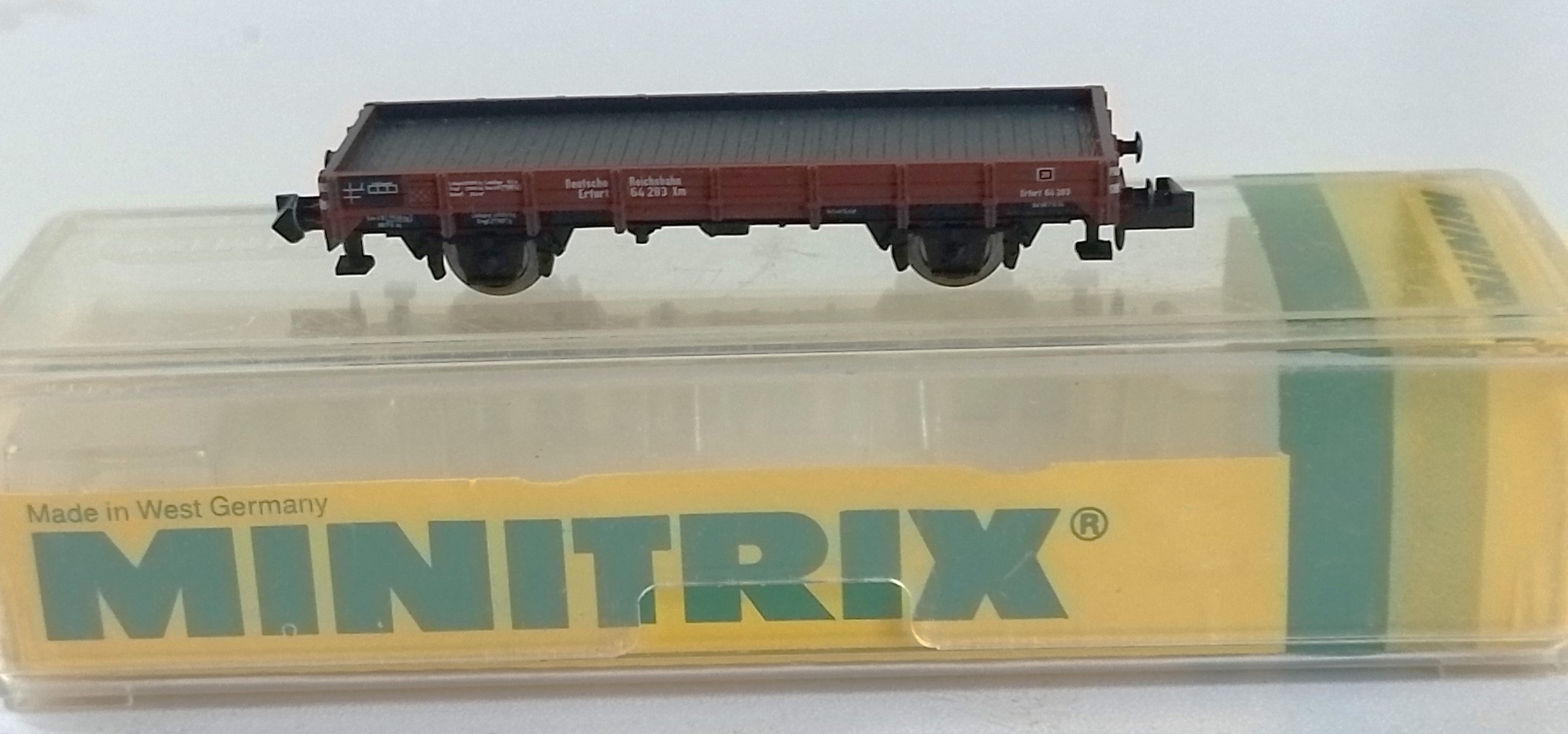 TRIX 11465 Minitrix N Niederbordwagen 2achsig Epoche II DRG. Wagennummer Erfurt 64 283. 1 Stück.