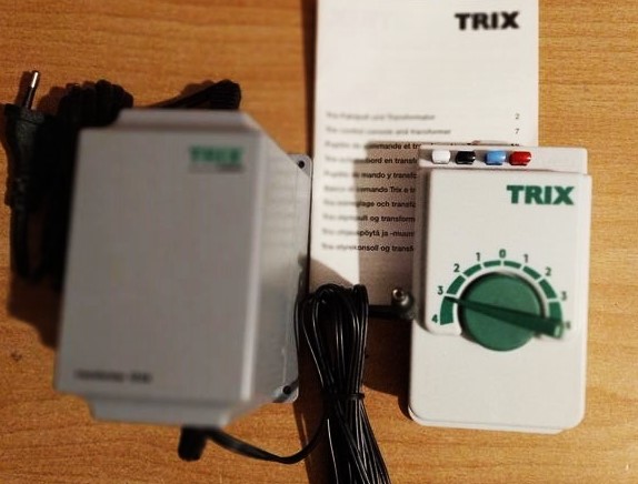 TRIX 612086 -B H0+N Fahrregler-Set mit Netzteil. Regler/Controller Fahrstrom 0-14 V eff. max. 1,0 A, Lichtstrom 16-24 V DC/AC, max. 3,75 A. Input max. 20 V AC / 24 V DC. mit Transformator (TRIX 66191) 230 V AC, sekundär 18 V DC 1 A 18 VA. Mit Anleitungsheft. 1 Set.