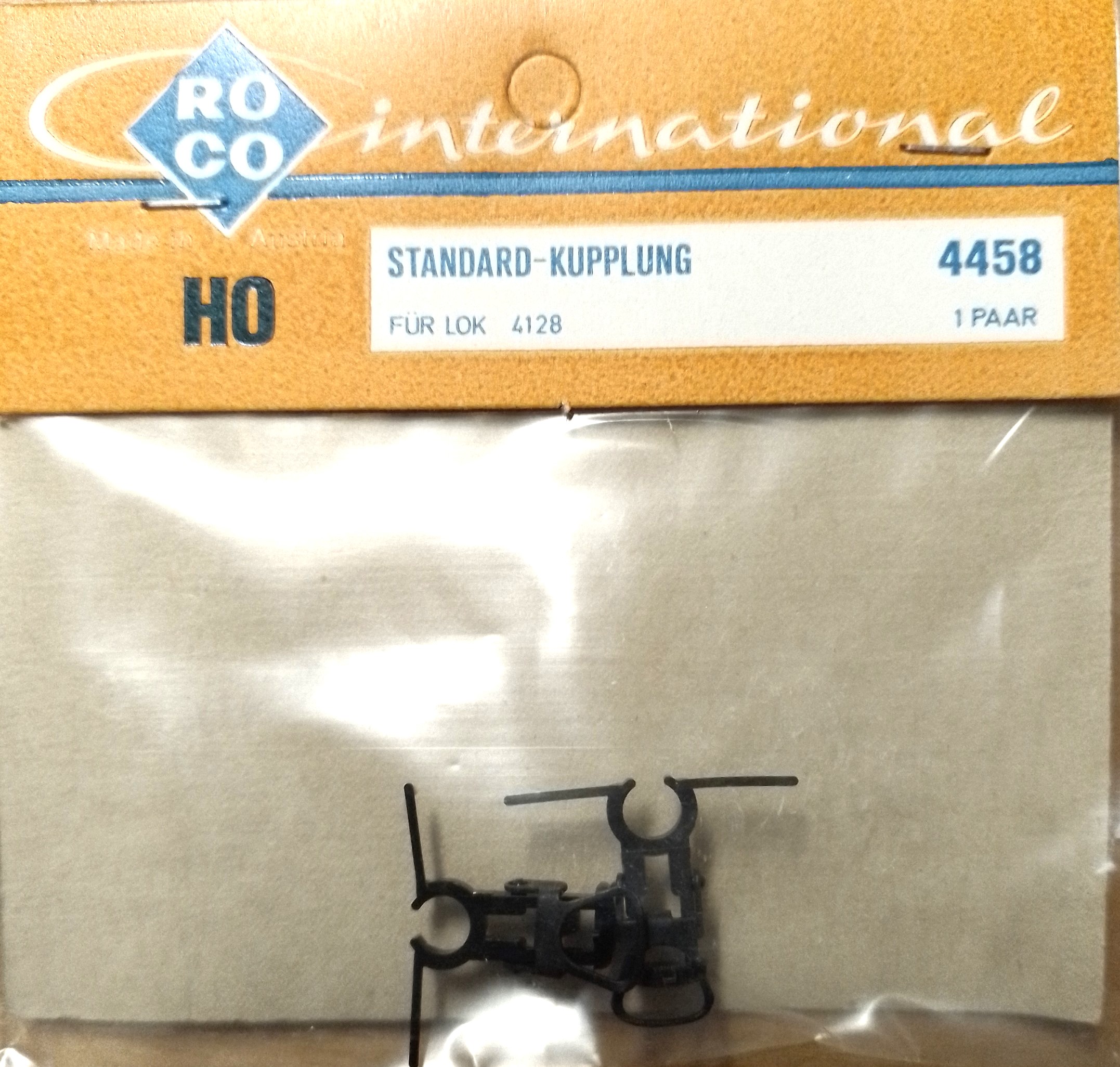 Roco 40206: H0 Original-Ersatzteil 4458 Standardkupplung alt, passend u.a. zur E-Lok E 69, Modell 4128. 1 Paar.
