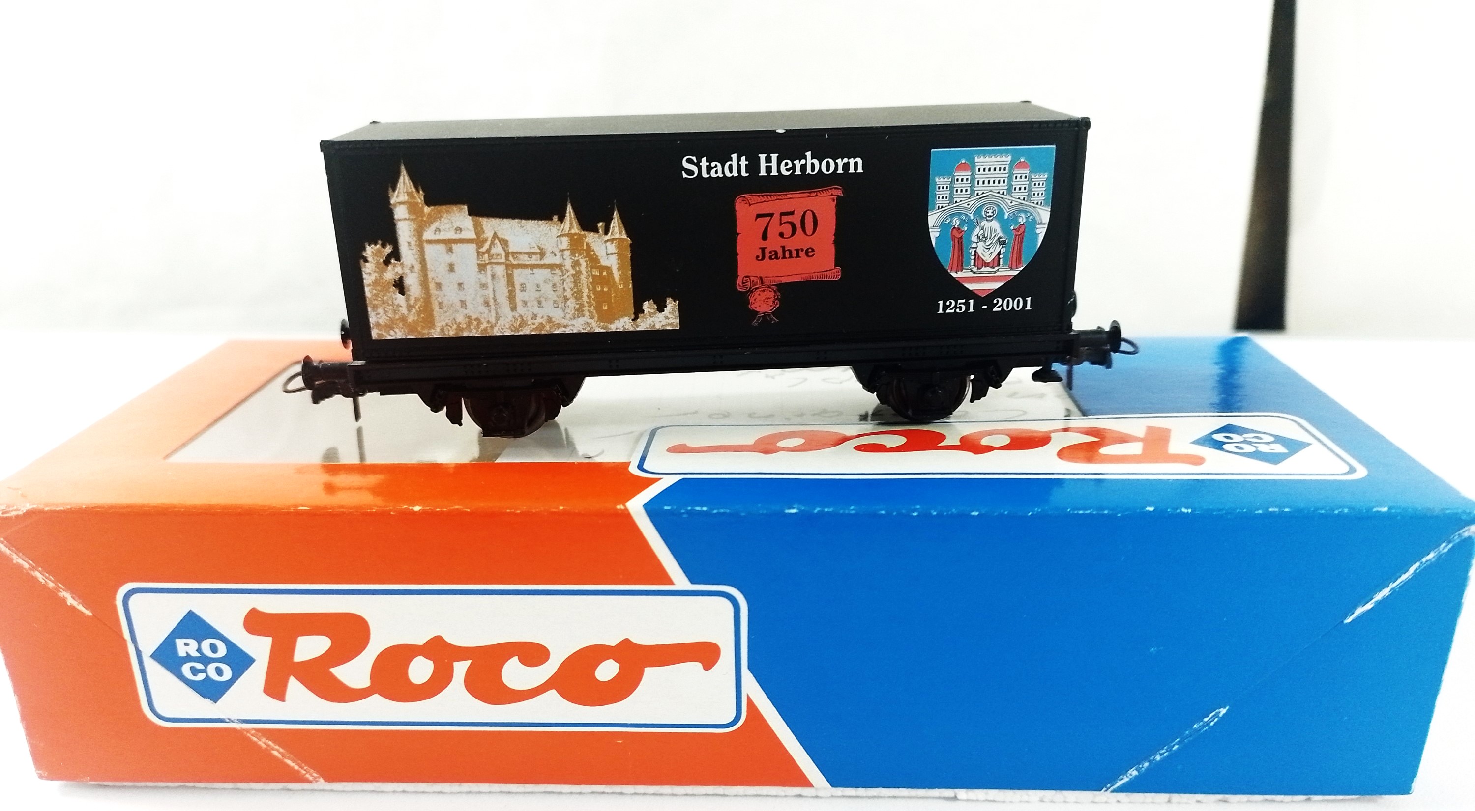 Roco 44211: H0 Sondermodell Containerwagen "750 Jahre Stadt Herborn". Limitierte Auflage 222 Stück. Gebraucht. 1 Stück.