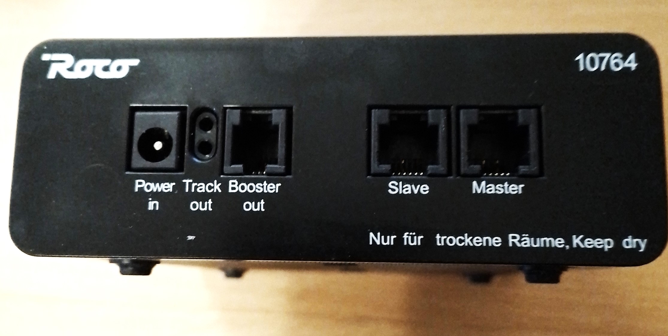 Roco 10764: Digitalverstärker mit zwei Anschlüssen (Master & Slave) für eine Z21 multiMAUS und z. B. eine weitere Maus. Der Verstärker bereitet die Daten der Mastermaus für den Fahr- und Schaltbetrieb auf. Nur am ‚Slave’-Ausgang dürfen weitere Z21 multiMAUS-Handregler, RouteControls oder das Interface mit Rocomotion angeschlossen werden. Wer noch weitere Eingabegeräte anstecken möchte, erhält mit der Artikelnummer 10758 einen preiswerten Y-Adapter. Leistung 50 VA in Verbindung mit Trafo 670601 oder 10851. Maximaler Strom 3,2 A am Gleisausgang. 1 Stück.