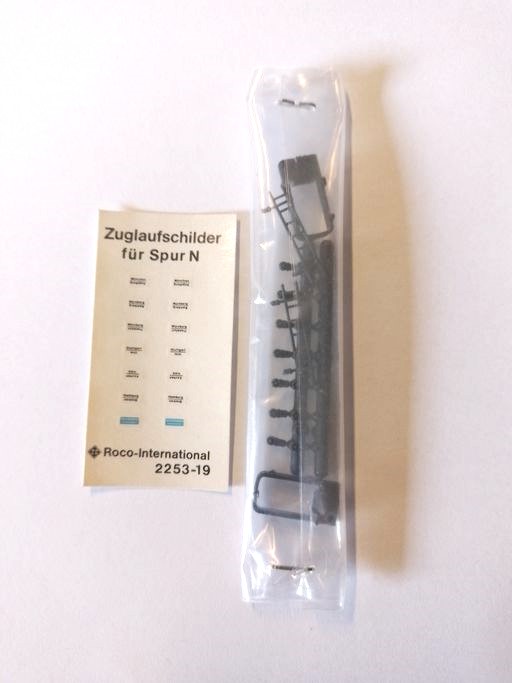 Roco 2256-19 N Original-Ersatzteil Zurüstsatz Hechtwagen, bestehend aus Zuglaufschildern. Faltenbälgen, Einstiegsleitern und Dachlüftern. Passend zu Hechtwagen 2256, 24212 ff. 1 Set.