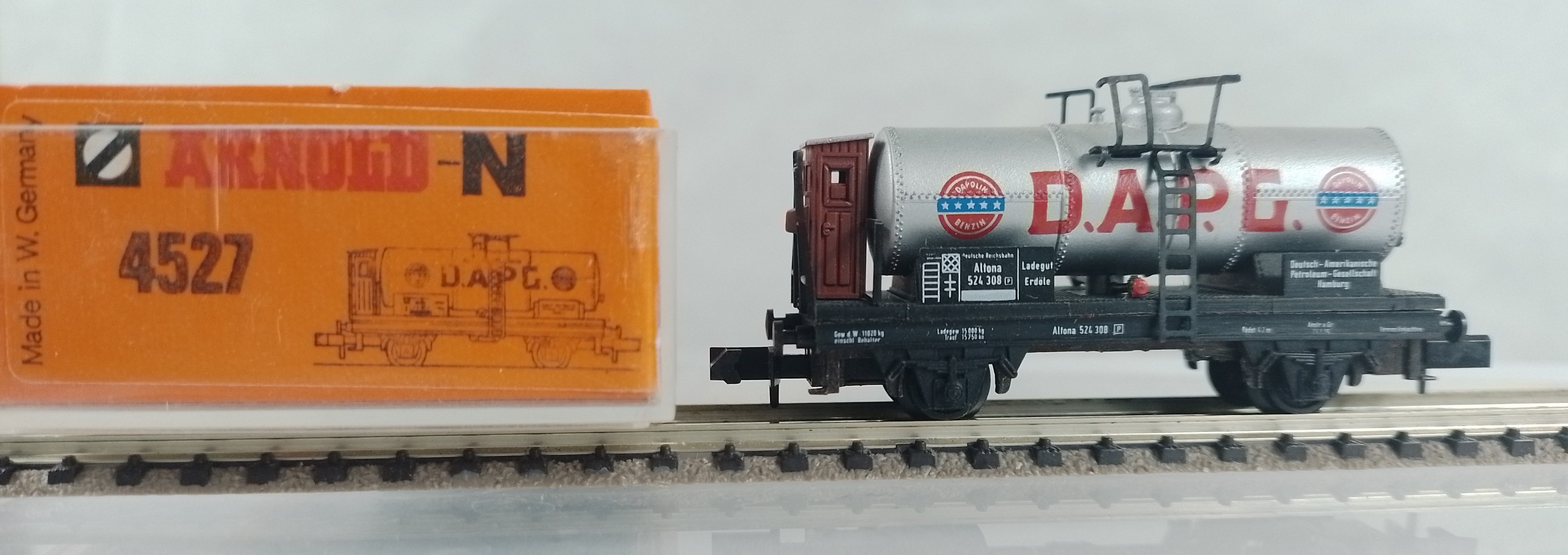 Arnold 4527: N Kesselwagen D.A.P.G. Epoche II. Gebraucht mit Originalverpackung. 1 Stück.
