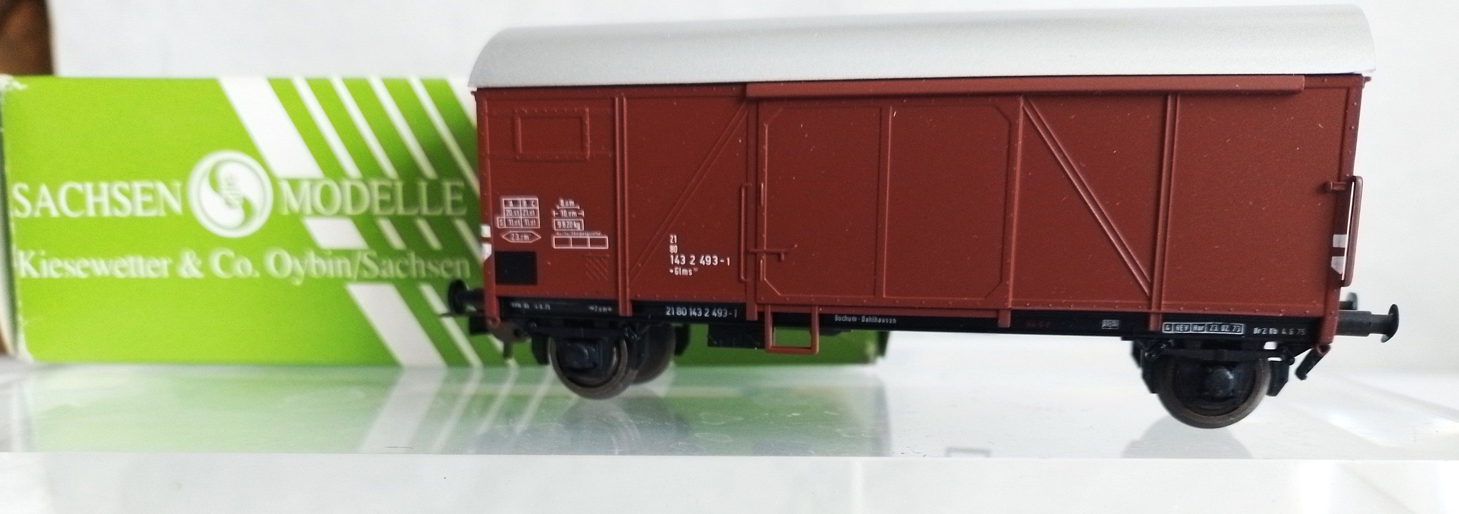 Sachsenmodelle 16098: H0 gedeckter Güterwagen mit Beschädigung als Bastelware zum Ausschlachten oder als Schlußwagen verwendbar. 1 Stück.